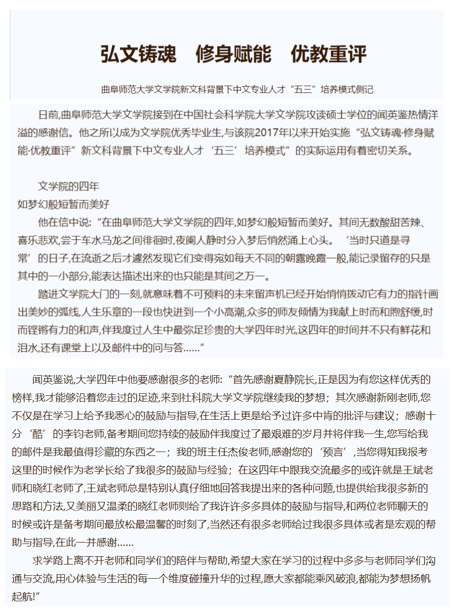 【齐鲁晚报】弘文铸魂 修身赋能 优教重评 ——大发平台文学院新文科背景下中文专业人才“五三”培养模式侧记