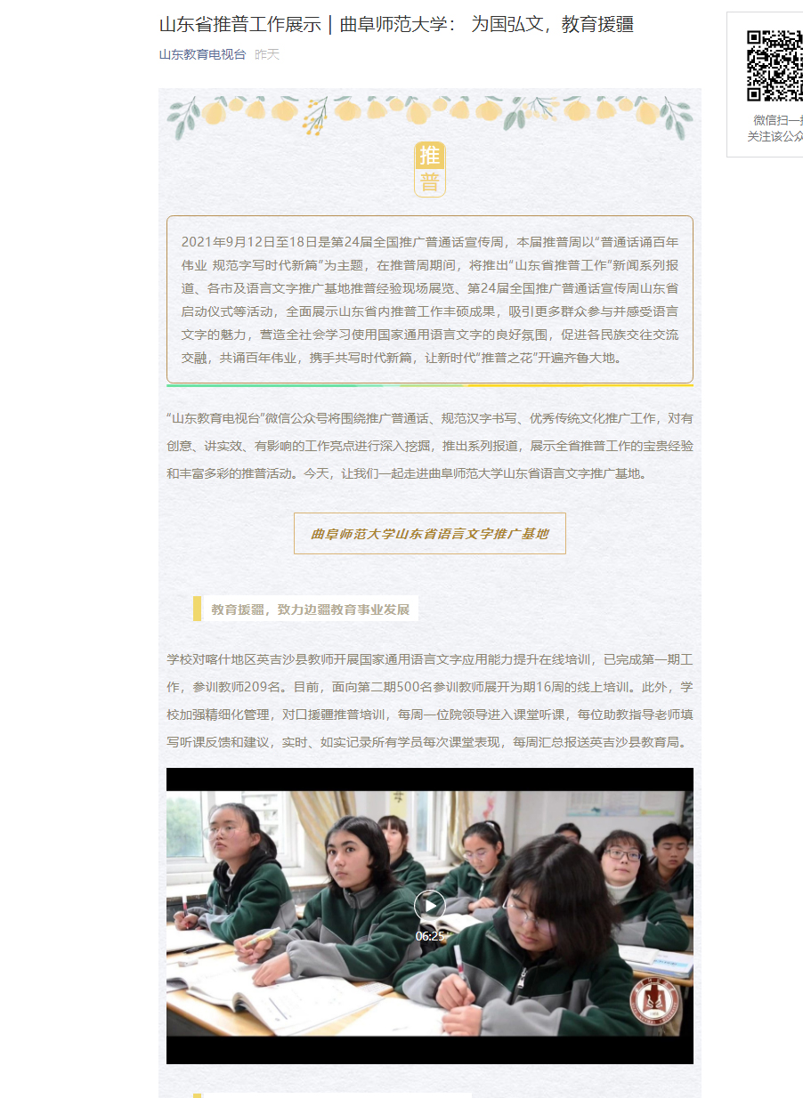 【山东教育卫视】大发平台: 为国弘文,教育援疆