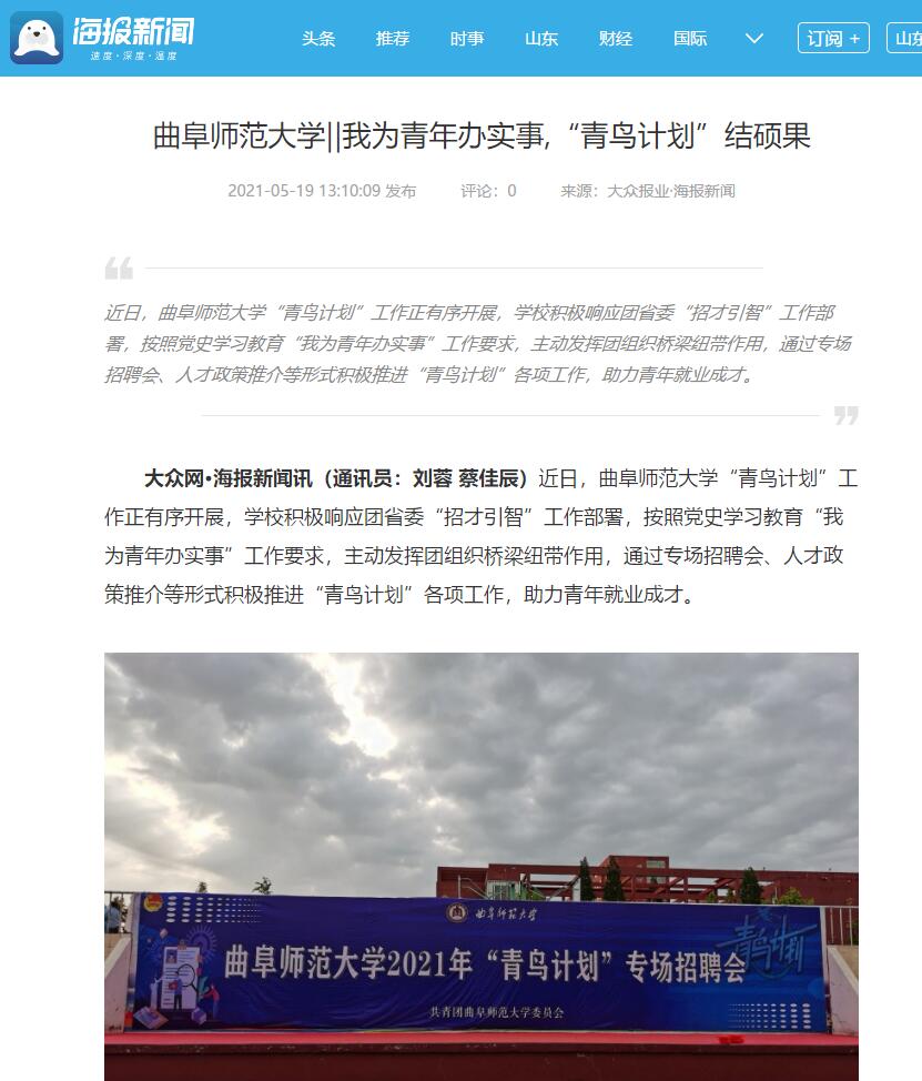 大众网:大发平台‖我为青年办实事,“青鸟计划”结硕果