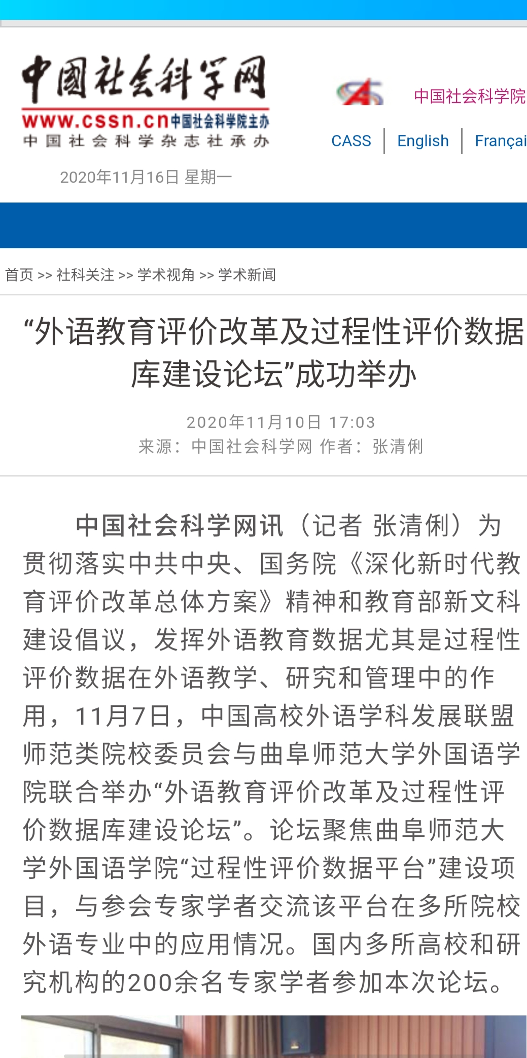 报道链接:http://news.cssn.cn/zx/xshshj/xsnew/202011/t20201110_5215070.shtml