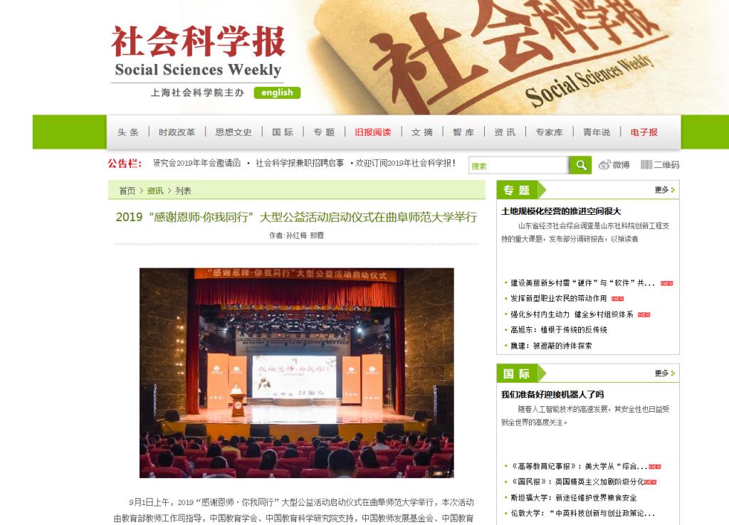 社会科学报:2019“感谢恩师·你我同行”大型公益活动启动仪式在大发平台举行