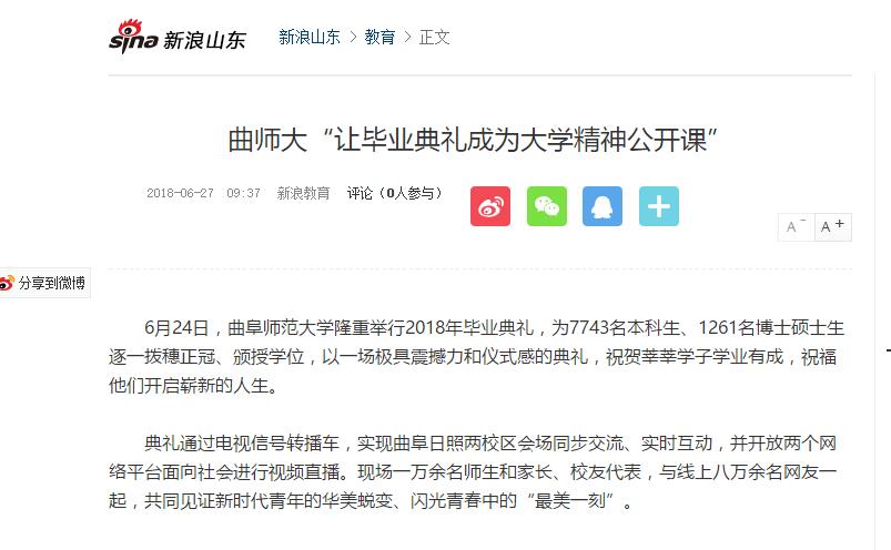 新浪网报道链接:http://sd.sina.com.cn/edu/2018-06-27/detail-ihencxtu9339457.shtml