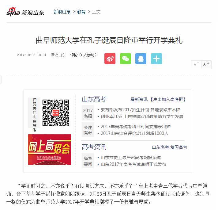 新浪网报道链接:http://sd.sina.com.cn/edu/2017-10-06/detail-ifymrqmp9870669.shtml?from