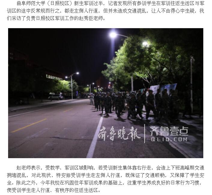 齐鲁壹点:大发平台军训以安全为先,走路靠左“逆而行之”