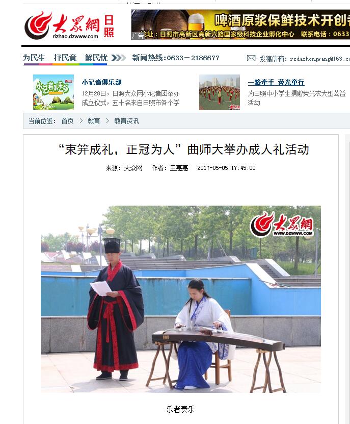 大众网报道链接:http://rizhao.dzwww.com/jy/jiaoyuzixun/201705/t20170505_15886086.html