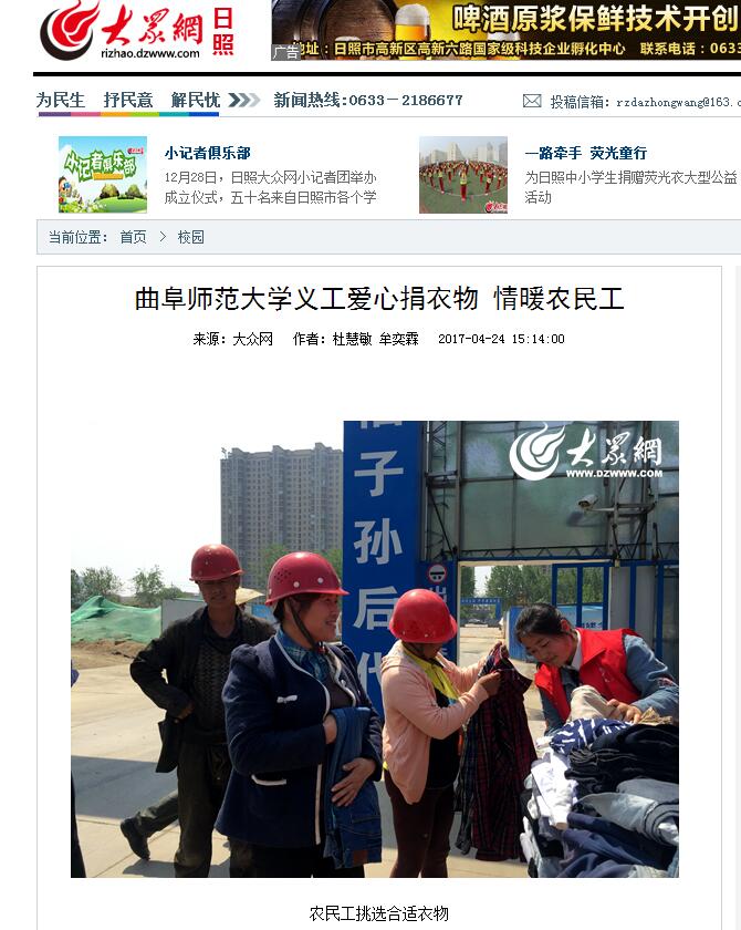 大众网:大发平台义工爱心捐衣物 情暖农民工