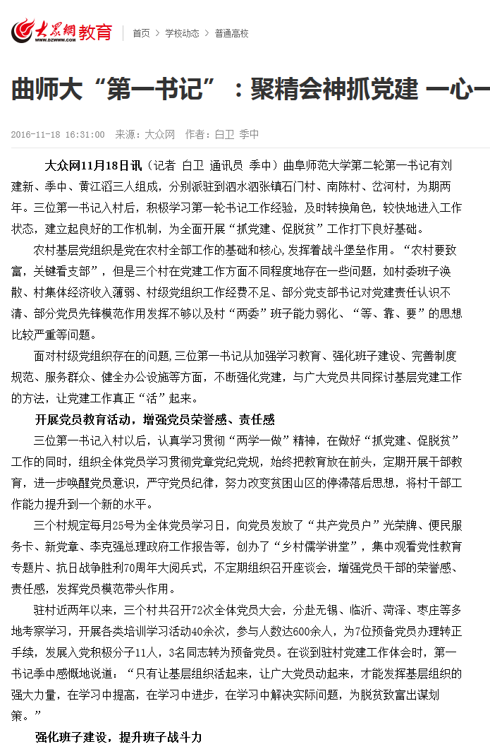 大众网:曲师大“第一书记”:聚精会神抓党建 一心一意谋发展
