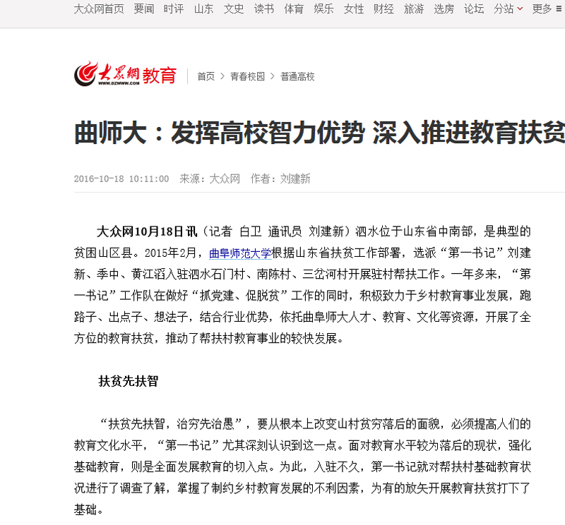 大众网:曲师大:发挥高校智力优势 深入推进教育扶贫