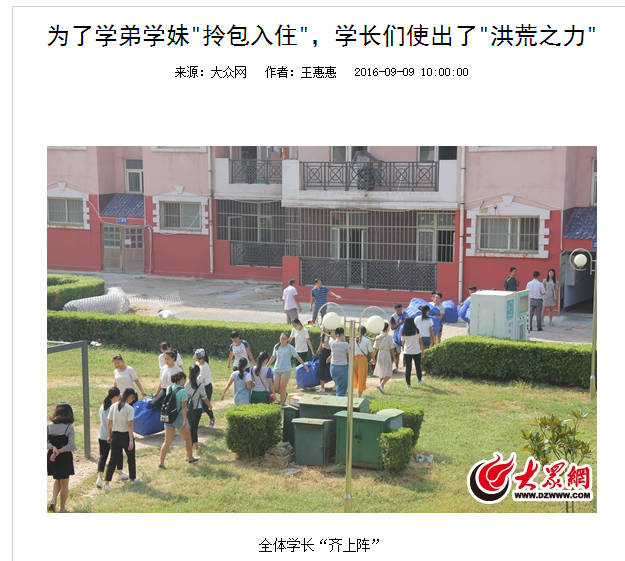 大众网:曲师大迎新 学长使出“洪荒之力”