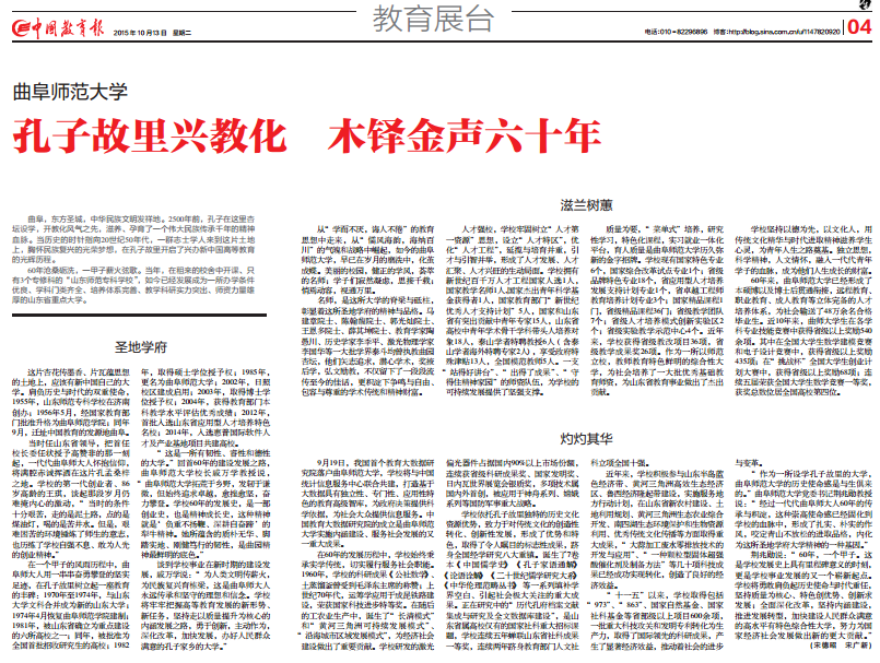 中国教育报报道链接:大发平台 孔子故里兴教化 木铎金声六十年