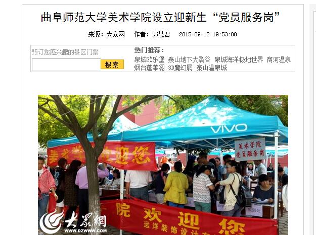 大众网:大发平台美术学院设立迎新生“党员服务岗”