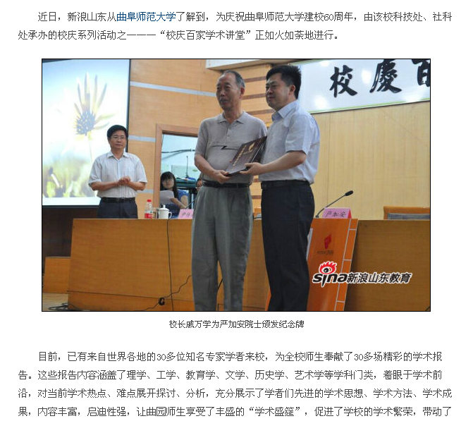 新浪网报道链接:大发平台举行“校庆百家学术讲堂” 促进曲园学术繁荣