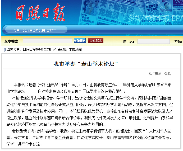 日照日报链接:http://epaper.rznews.cn/shtml/rzrb/20141020/337657.shtml