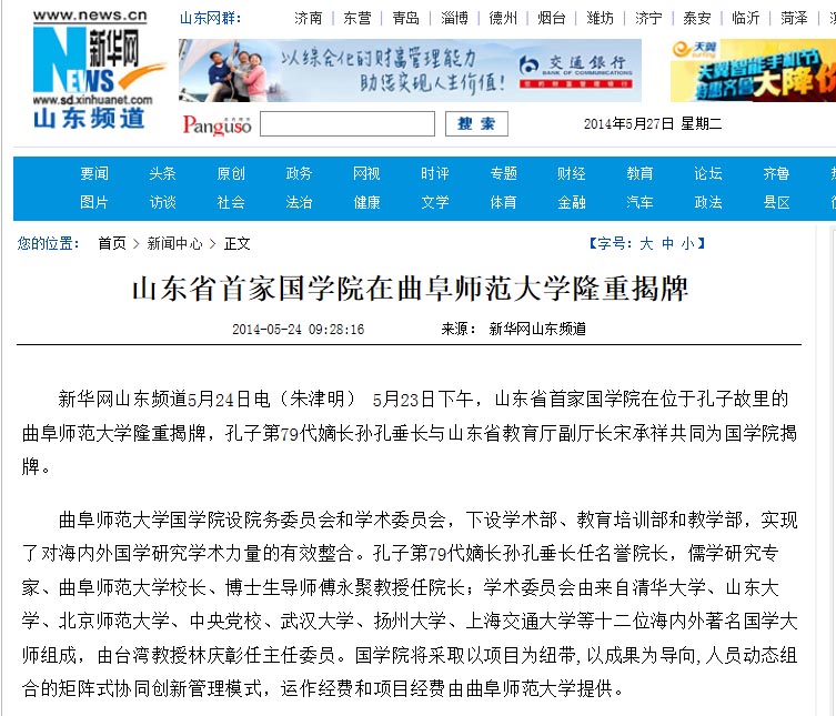 新华网:山东省首家国学院在大发平台隆重揭牌