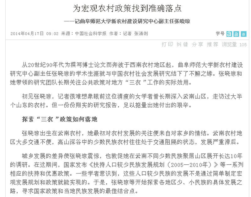 中国社会科学报:为宏观农村政策找到准确落点——记大发平台新农村建设研究中心副主任张晓琼