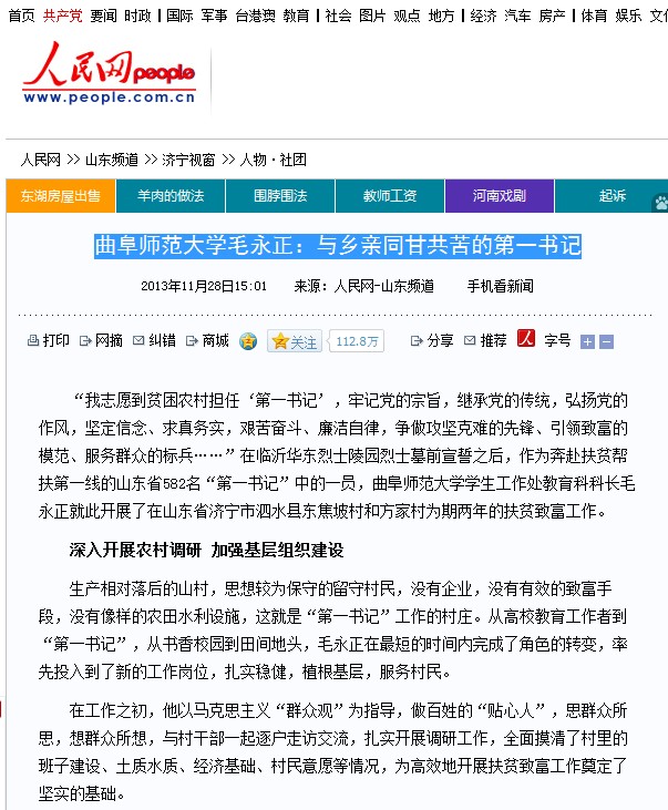人民网:大发平台毛永正:与乡亲同甘共苦的第一书记