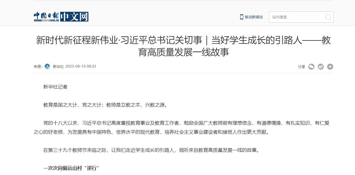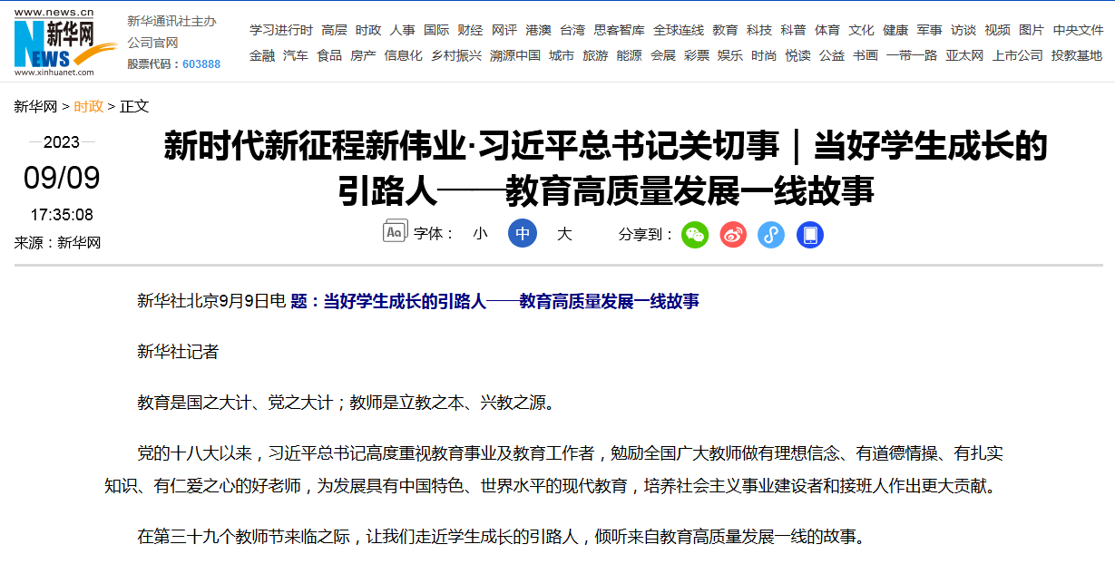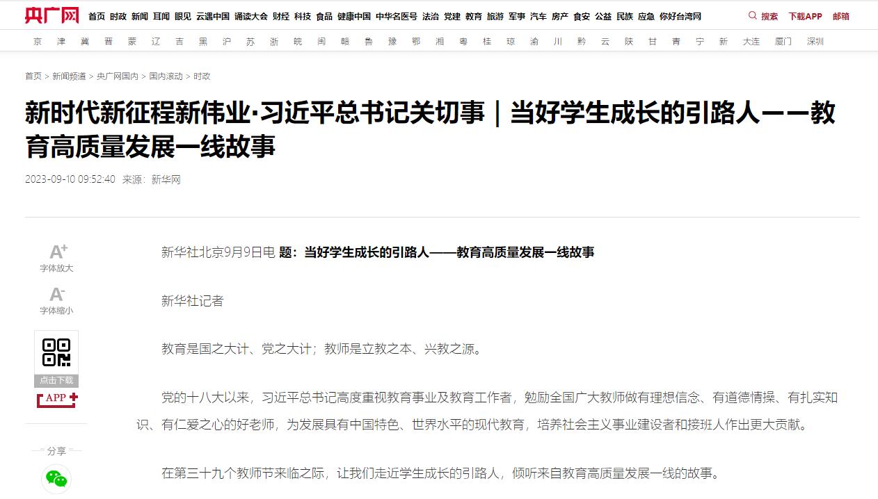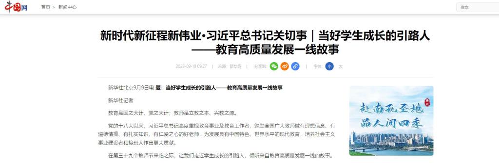 教育部网站报道链接:http://www.moe.gov.cn/jyb_xwfb/xw_zt/moe_357/2023/2023_zt14/mtbd/202309/t20230910_1079409.html