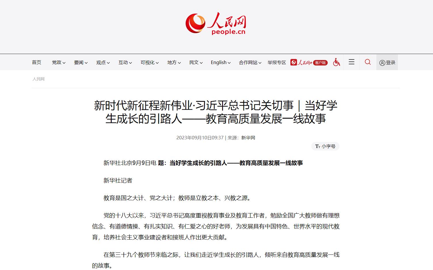 新华每日电讯报道链接:http://mrdx.cn/h5/mrdx/content/20230911/Articel01004GN.htm