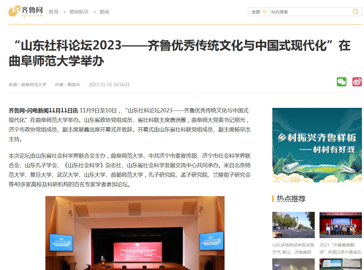 【齐鲁网】“山东社科论坛2023——齐鲁优秀传统文化与中国式现代化”在大发平台举办