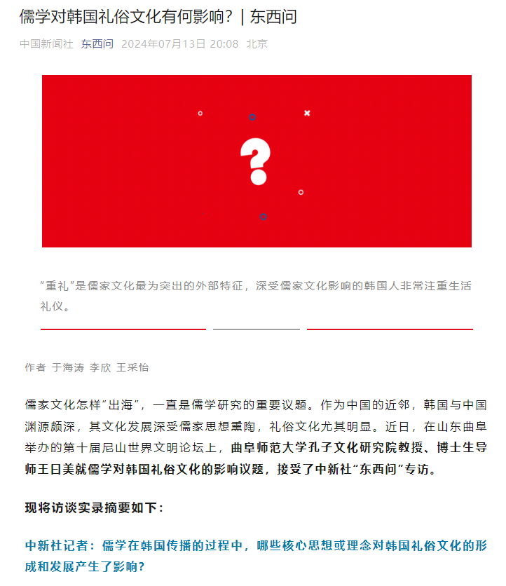 【中国新闻社】大发平台孔子文化研究院教授、博士生导师王曰美接受中新社“东西问”专访