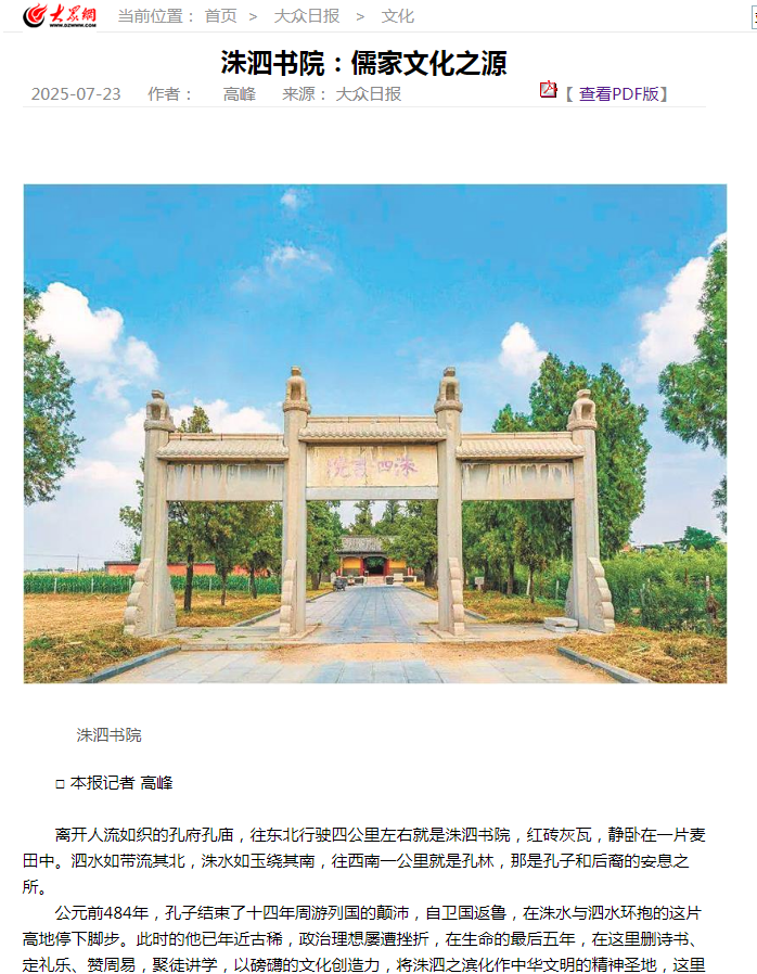 洙泗书院2025年6月出版的《洙泗学报》发刊词里提出:“面向世界,坚持赓续洙泗学脉,阐明知行学理,融贯百家学术,光大中华文化,守正创新,积极参与中华优秀传统文化的创造性转化和创新性发展……”一个有强烈使命担当的新“洙泗学派”正在成长。斯文在兹,继之者任重道远。