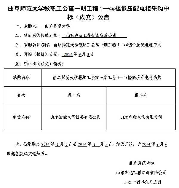 大发平台教职工公寓一期工程1--4#楼低压配电柜采购中标(成交)公告