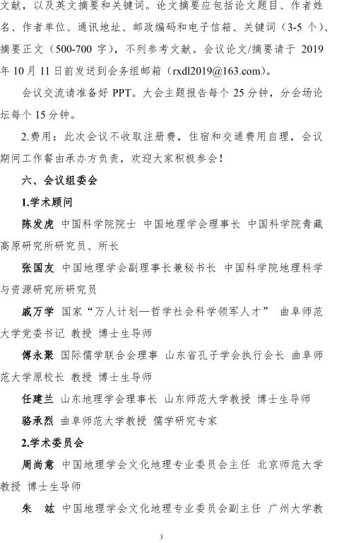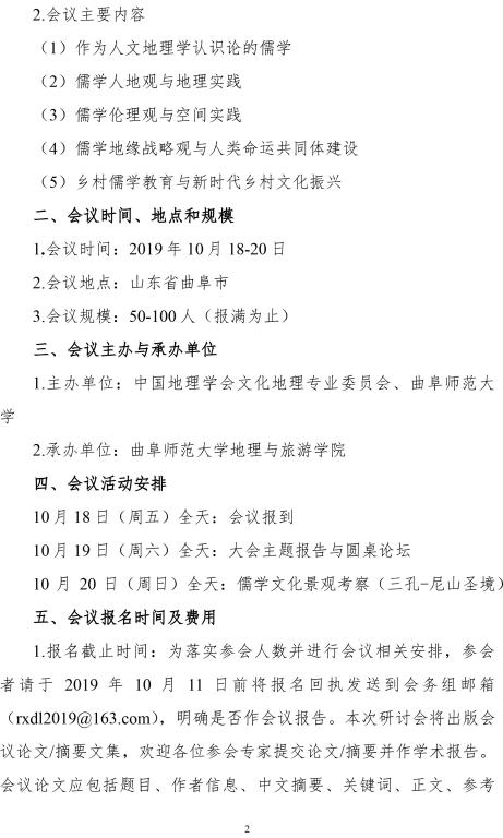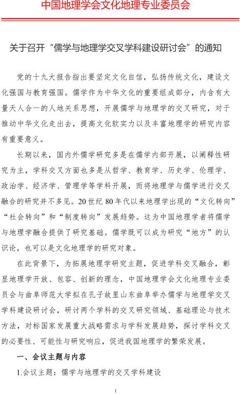 关于召开“ 儒学与地理学交叉学科建设研讨会” 的通知