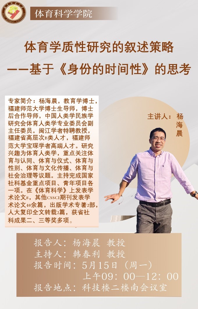 体育科学学院专家报告|杨海晨:体育学质性研究的叙述策略——基于《身份的时间性》的思考