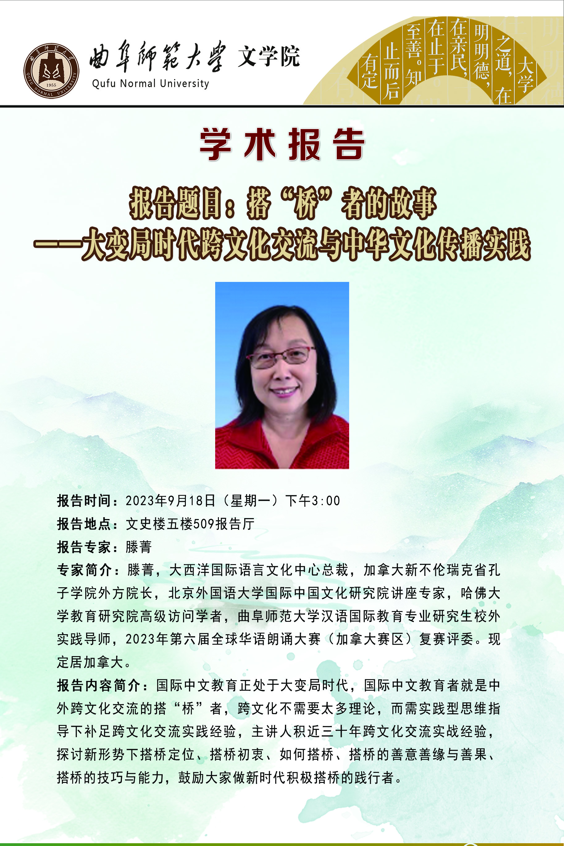 专家简介:滕菁,大西洋国际语言文化中心总裁,北京外国语大学国际中国文化研究院讲座专家,哈佛大学教育研究院高级访问学者,大发平台汉语国际教育专业研究生校外实践导师,2023年第六届全球华语朗诵大赛(加拿大赛区)复赛评委。现定居加拿大。