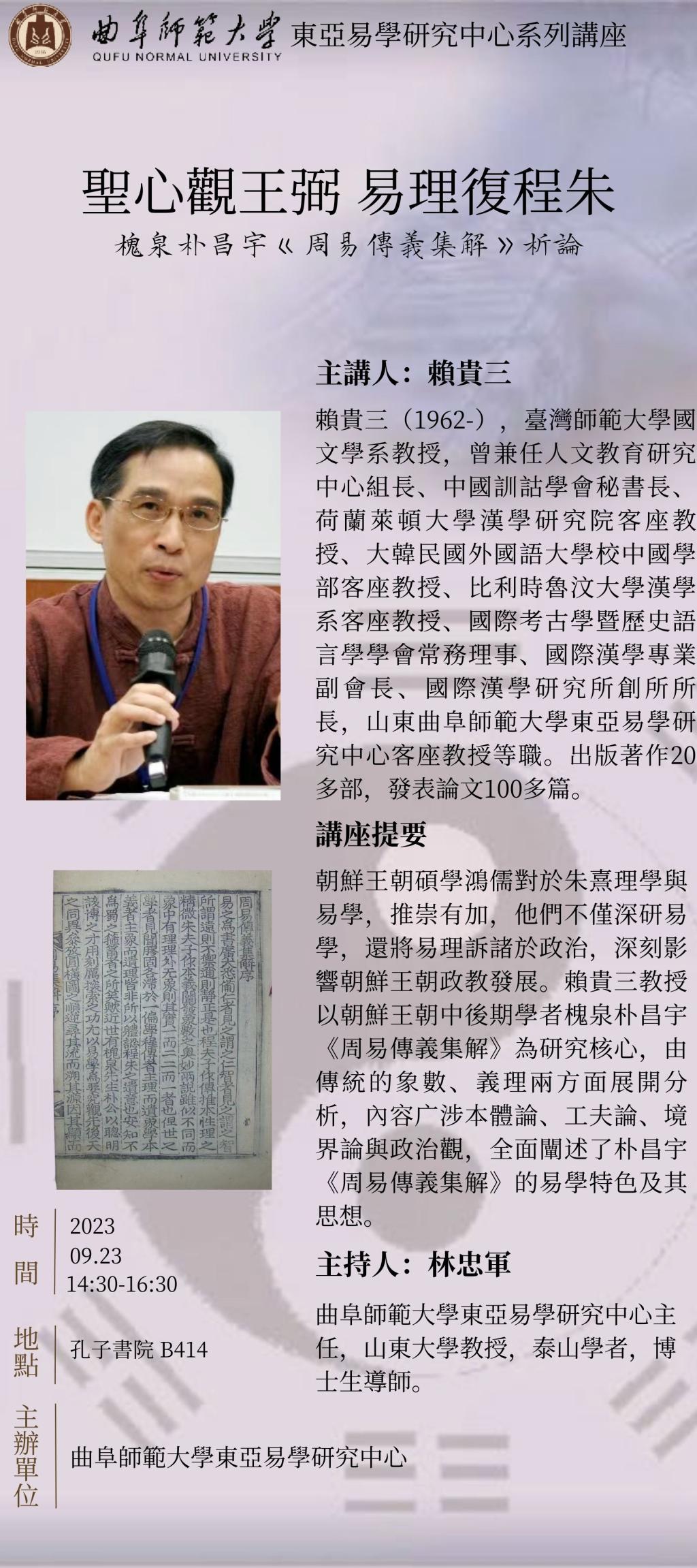 东亚易学研究中心系列讲座预告:圣心观王弼 易理复程朱