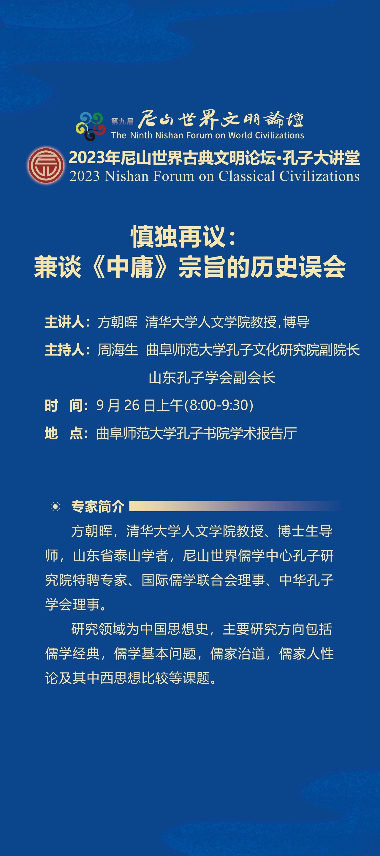 孔子大讲堂预告| 方朝晖:《慎独再议:兼谈<中庸>宗旨的历史误会》