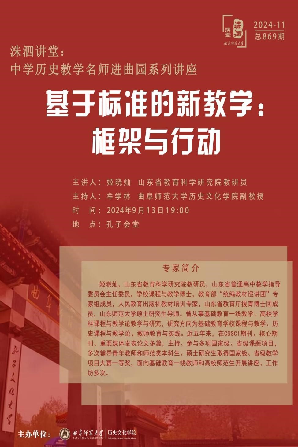 洙泗讲堂预告|姬晓灿:基于标准的新教学:框架与行动