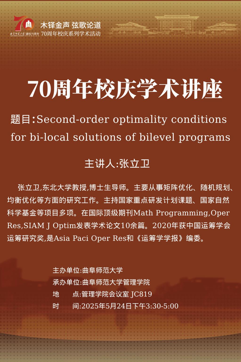 一流学科和交叉研究篇(之十五)Second-order optimality conditionsfor bi-local solutions of bilevel programs