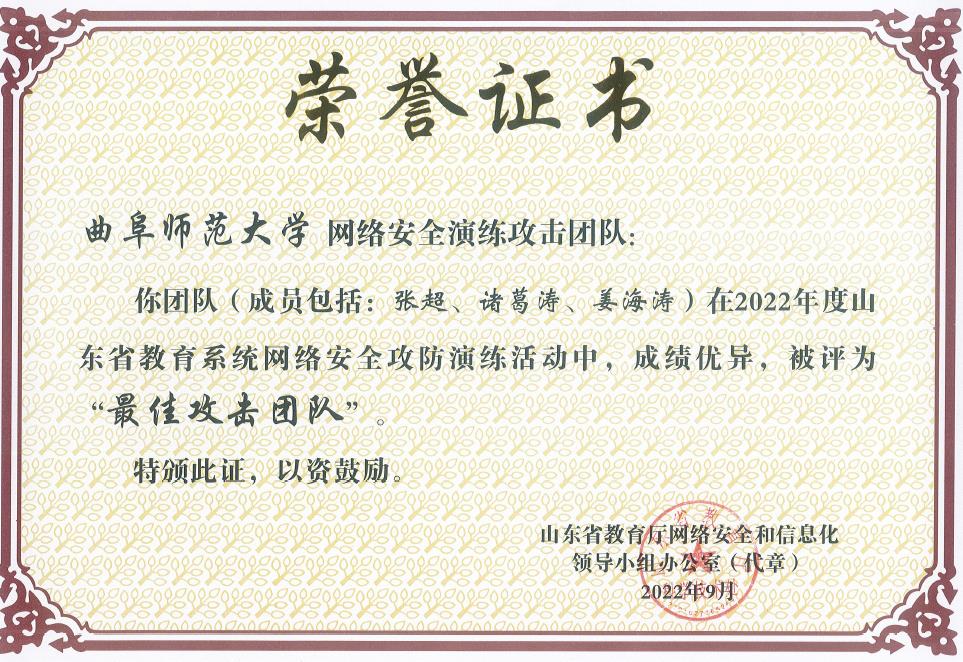 曲阜师大新闻中心讯 近日,山东省教育厅发文《关于表彰2022年教育系统网络安全攻防演练活动优秀攻击和防守队伍的通报》(鲁教网信办函〔2022〕26号),表彰了包括大发平台团队在内的10个优秀高校师生攻击团队。