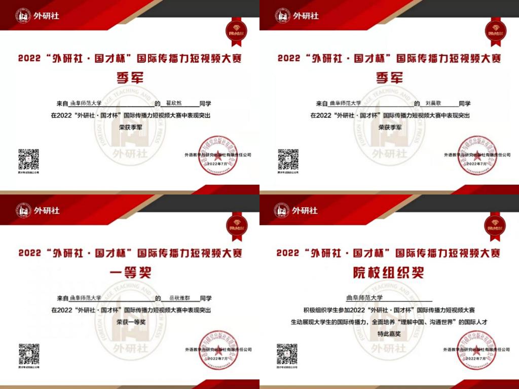 曲园学子在2022“外研社•国才杯”国际传播力短视频大赛决赛中斩获佳绩