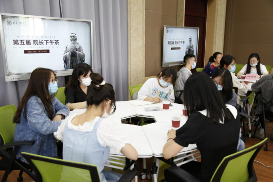 曲阜师大新闻中心讯(通讯员:冯萌萌   摄影:孙盈盈   孙晓伟) 为进一步贯彻“以本为本”“学生中心”的教育理念、深化学院新文科背景下汉语言文学和戏剧影视文学国家级双一流本科专业内涵建设,擦亮学院本科教育金字品牌,践行立德树人、为国弘文的从教初心,5月18日下午,文学院第五届“倾听青春拔节的声音——院长下午茶”师生恳谈活动举行。副校长李兆祥教授,文学院党委书记左兴才,院长夏静教授,党委副书记曲媛媛,副院长杨新刚教授,国家语言文字推广基地副主任霍俊国副教授,教师代表冯萌萌、孙晓伟与文学院学生代表手捧一杯香茗,围坐一起,畅所欲言,交流大学的学习与生活。