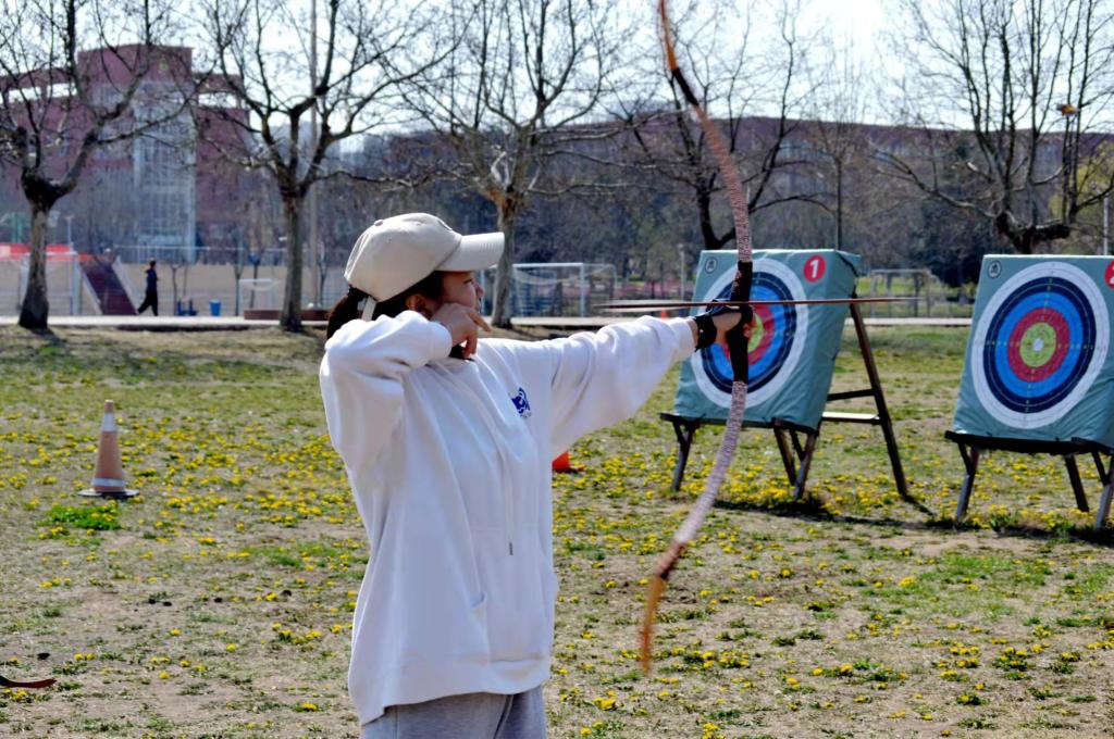 从就位、揖让到举弓、瞄准、撒放,同学们整套动作一气呵成。“弓开如秋月行天,箭去似流星落地”,随着一支支利箭破空,日照校区西射艺场地成为了名副其实的“众矢之地”,参赛者也在欢声笑语中,感受了传统射箭运动的独特魅力。