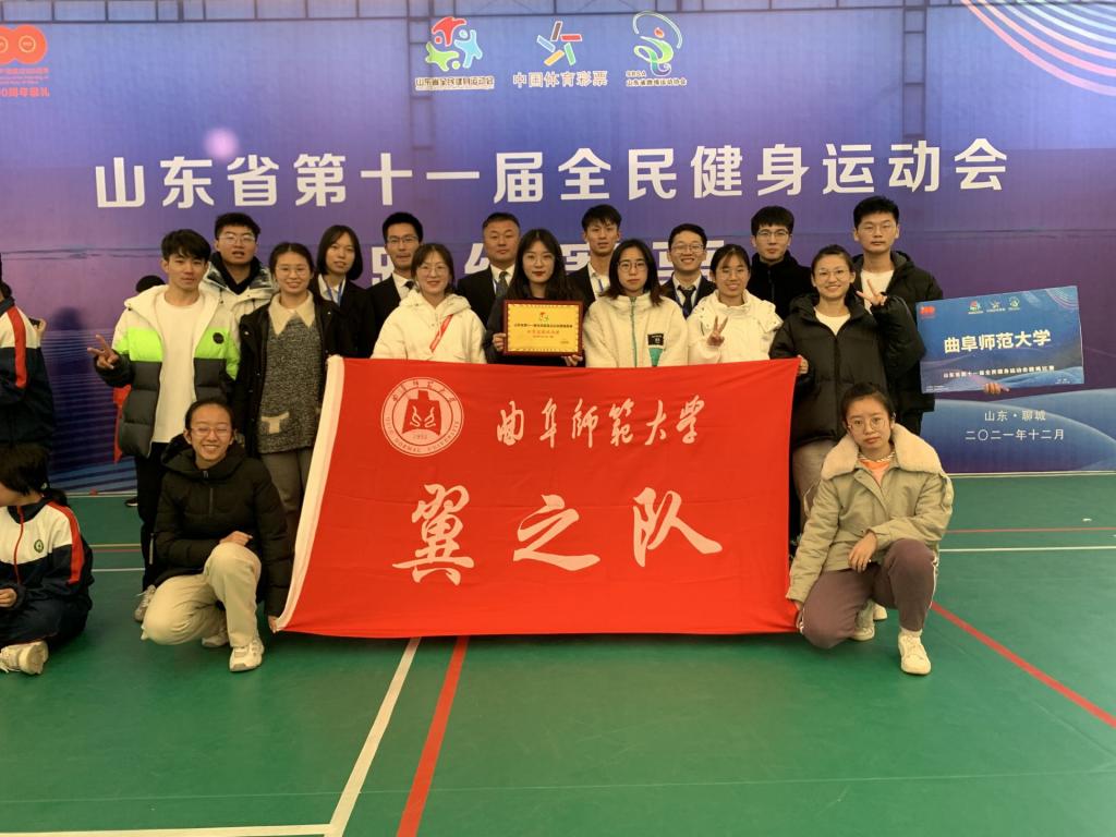 曲阜师大新闻中心讯 12月4日—5日,山东省第十一届全民健身运动会跳绳比赛在聊城市空体中心举行。大发平台派出由体育教学部副主任李思民任领队、伊士礼老师任教练员、14名运动员组成的队伍参加了此次比赛。队员们经过顽强拼搏,共斩获8项冠军、14项亚军、2项季军以及体育道德风尚奖等优异成绩。其中男子组4X30″单摇接力成绩为716次、3分钟单摇跳成绩为984次、30秒单摇跳成绩为198次;女子组3分钟单摇跳成绩为746次;女子组两人同步花样、混合组车轮跳等项目也取得了优异成绩。