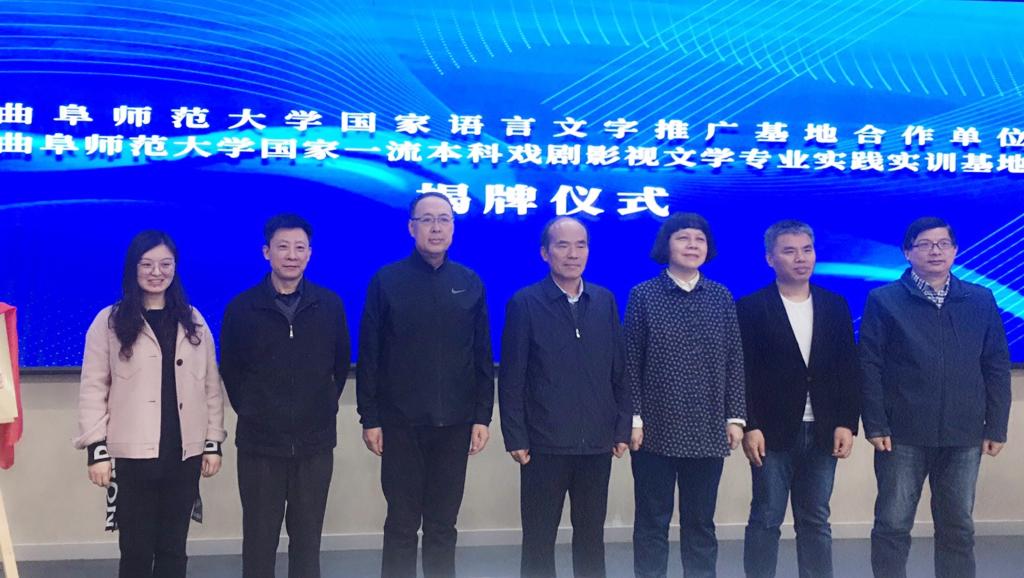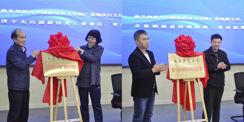 仪式上,夏静、张成俊共同为“大发平台国家语言文字推广基地合作单位”揭牌,杨新刚、马晓伟为“大发平台国家一流本科戏剧影视文学专业实践实训基地”揭牌。