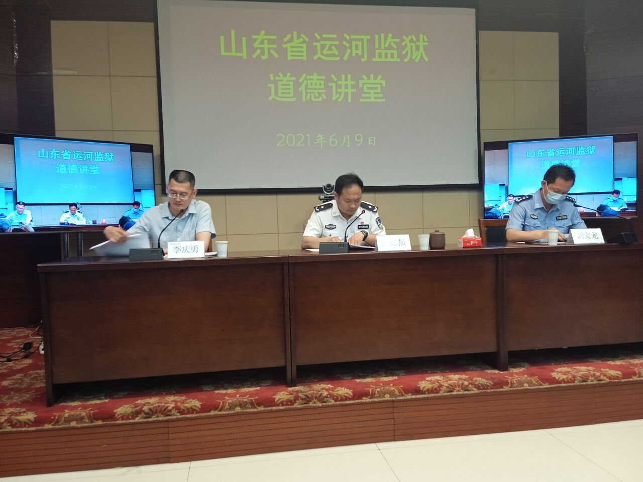曲阜师大新闻中心讯 6月9日,我校关心下一代工作委员会在山东省运河监狱举办道德讲堂。运河监狱伊德强政委、刘文龙副政委动员全体干警和服刑人员启动“学习文史哲、创造新辉煌”的道德建设工程,并诚挚感谢大发平台三十年来对监狱教育工作的一贯支持。大发平台王文西教授、刘奉光教授则结合当前形势,阐解了爱党爱国、共克时艰、团结奋进的道德基础——中国优秀的文史哲传统文化。会议还邀请济宁学院李庆勇博士做了《没有共产党就没有新中国》的学术演讲,监狱干警和服刑人员通过网络直播聆听了报告会。