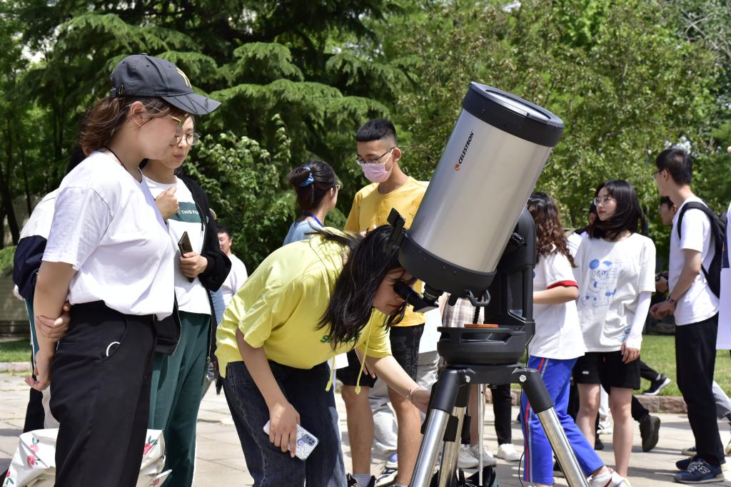 本次系列活动突出大学生群体,精心设计活动内容和载体,增强教育感染力。5月26日下午和晚上分别开展了“重温红色科学路,致敬爱国科学家”图片展、“来自星空的问候”天文科普知识展、太阳黑子观测和月全食观测活动。