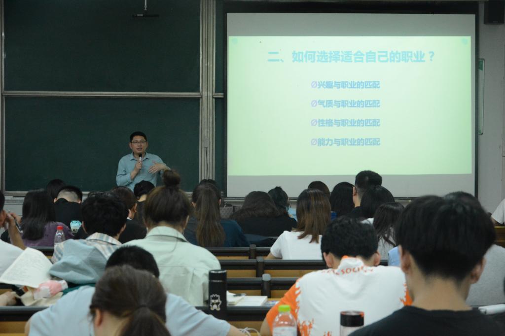 孙超围绕当前大学生最为关心的职业选择、职业规划、考公考编进行了分享,主要讲解了兴趣、气质、性格、能力与职业相匹配的基本原则和测量方法,并就如何做好职业生涯规划,如何准备公考的笔试和面试进行了详细的讲解。通过对公考时间、科目、题型、重点与难点的分析,帮助大学生了解了公考备考的注意事项和基本要求。孙超建议考公学子,一是要关注时事政治,注意基础知识和时政要点的积累;二是要坚定理想信念,坚持正确的政治方向和立场,认真学好各科课程,尤其是思政课程;三是要多练字多写作,提高书写水平和文章的写作能力;四是要多思考,要辩证地看待问题,培养严谨缜密的逻辑思维能力。