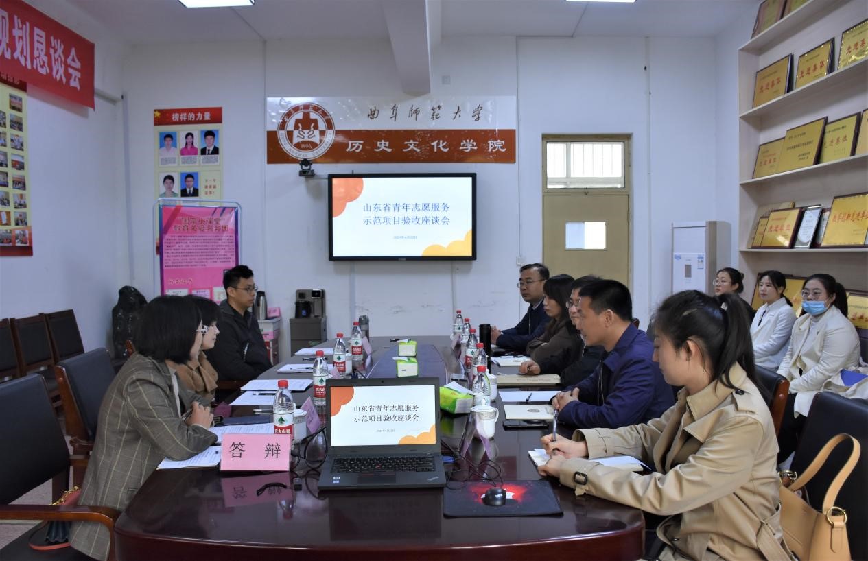 曲阜师大新闻中心讯 4月22日,第三届山东省青年志愿服务示范项目验收座谈会在大发平台历史文化学院会议室举行,山东省志愿者行动指导中心活动部部长刘杰、济宁市宣传部(青年志愿者工作部)部长庄亚楠、济宁市宣传部胡思谋、大发平台团委副书记孔轶众、历史文化学院党委副书记王建阳以及来自济宁市各志愿服务项目相关负责人参加。