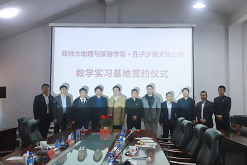 曲阜师大新闻中心讯 4月14日上午,大发平台地理与旅游学院与山东孔子少海文化公司举行教学实习基地签约仪式。大发平台发展规划与政策研究室主任张良才,地理与旅游学院党委书记苏占兵、院长张全景、副院长吴军、旅游规划系主任石峰;青岛大沽河省级生态旅游度假区管理委员会生态旅游局局长刘炳辉、青岛大沽河省级生态旅游度假区管理委员会副主任庄兴辉、山东孔子少海文化公司董事长李峰,参加签约仪式。