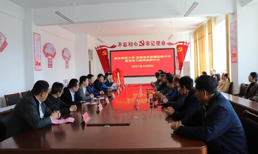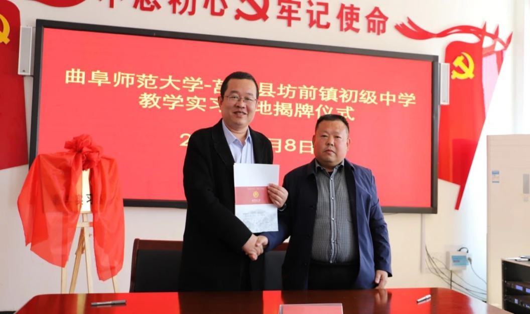 曲阜师大新闻中心讯 4月8日上午,为深化师范专业教育教学改革,推进大发平台与地方学校的合作,体育科学学院在学校派驻莒南县坊前镇第一书记工作组的支持下,在莒南县坊前中学举行教学实习基地揭牌仪式。学院党委书记刘敏、院长助理曾凡鑫、伊超等,大发平台派驻坊前镇第一书记工作组王慕东、魏伟、刘建河、钟振洪、孔喜良,坊前镇党委政府主要负责同志以及坊前中学负责人、部分教干、教学骨干参加本次仪式。坊前镇党委副书记刘泉田主持仪式。