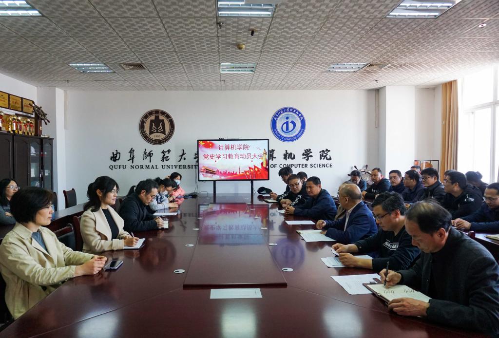 曲阜师大新闻中心讯 为贯彻落实党中央《关于在全党开展党史学习教育的通知》及省委、学校党史学习教育动员大会会议精神,按照学校党委《在全校开展党史学习教育实施方案》的通知要求,3月26日上午,计算机学院在JC1011会议室隆重召开党史学习教育动员大会,学院全体教师及学生代表参加大会,会议由学院党委副书记肖龙航同志主持。