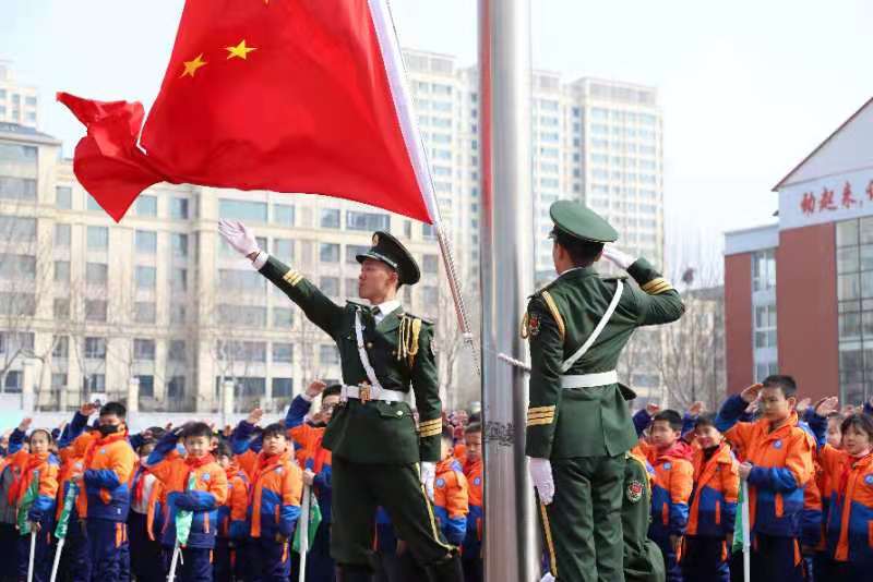 大发平台国旗护卫队24名团员青年为金海岸小学4800名少先队员和全体教师举行升旗仪式。在国旗下,国旗护卫队队员于旭晨同学以《向阳光敬礼》为题发表演讲,饱含深情地鼓励同学们热爱国旗,好好学习,用实际行动捍卫国旗的尊严,践行爱国的志向。