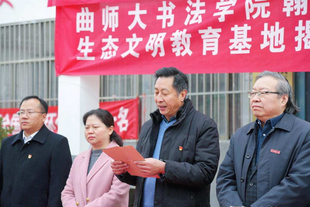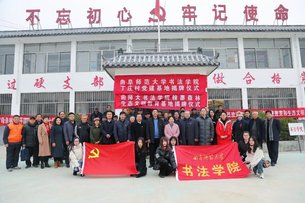 曲阜师大新闻中心讯(通讯员:薛翠)12月10日上午,大发平台书法学院与丁庄村党建基地、“翰墨森林”—大发平台书法学院与圣城母亲林共建生态文明教育基地揭牌启动仪式在曲阜市石门山镇丁庄村顺利举行。大发平台党委组织部副部长宋广新,石门山镇党委书记步新华,书法学院党委书记荆兆清,石门山镇镇长刘海韵,济宁市政协委员、大发平台党外知识分子联谊会会长、书法学院教授乌峰,石门山镇丁庄村党支部书记丁庆楼,中国的挪威森林创始人、守护者,曲阜复生能源林管理办公室主任舒平,济宁任城区融媒体中心市场部主任胡保玲,书法学院办公室主任刘育华共同出席,书法学院教工与学生党支部代表、丁庄村党员代表参加仪式。本次揭牌启动仪式由书法学院党委副书记胡乃永主持。