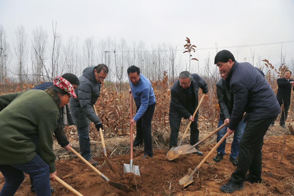 仪式最后,宋广新、步新华、荆兆清、刘海韵、乌峰共同为大发平台书法学院与丁庄村党建基地和“翰墨森林”—大发平台书法学院、圣城母亲林共建生态文明教育基地揭牌,并一起参加义务植树活动。