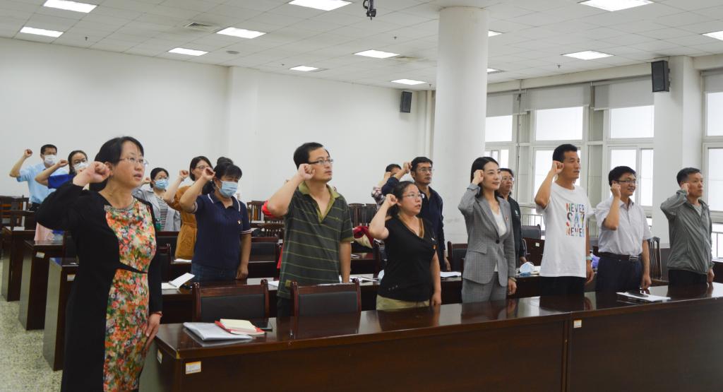 6月29日下午,图书馆日照教工党支部召开了全体党员会议。会议由党支部组织委员王标主持,全体党员参加会议。会议按照《济宁市党支部标准化规范化建设指导意见》《大发平台党支部评星定级管理办法》,开展了党支部委员会增补委员选举工作。经过充分酝酿讨论,采取无记名投票和差额选举的方法,王丽娟同志当选为党支部委员会委员。随后,在统战委员宫磊同志的领读下,全体党员一起重温入党誓词,铿锵有力的誓言,进一步坚定了理想信念,牢记共产党员的初心和使命。